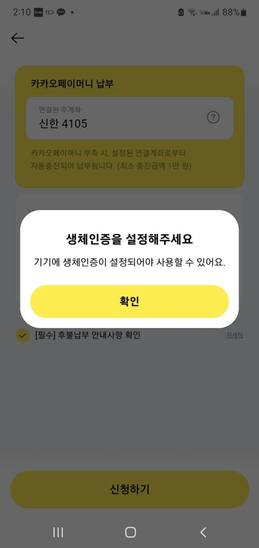 ◆ 생체인증이 설정되지 않았으면 아래와 같이 나오는데요.