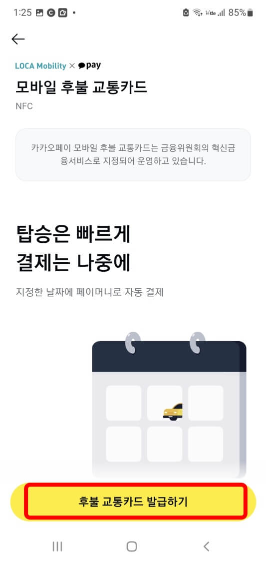 모바일 교통카드 발급