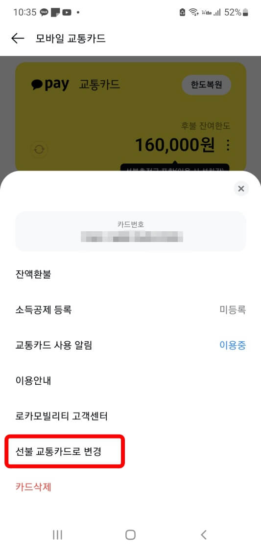4. 선불카드에서 후불카도로 바꾸고 싶을 때는 사용하던 선불교통카드를 삭제하고 다른 교통카드로 가입하면 됩니다.