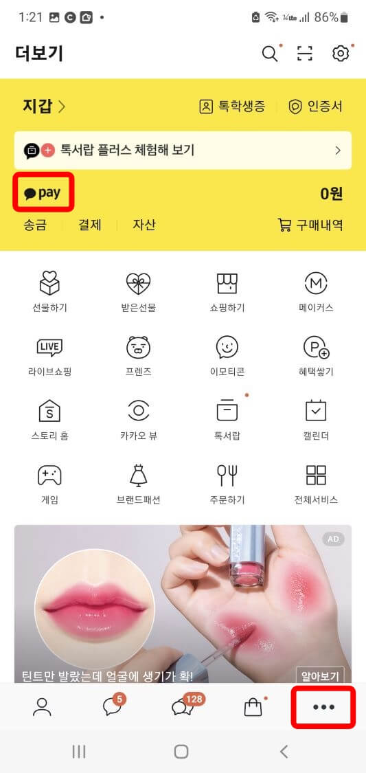 ◆ 카카오톡 -하단 더보기(···) 를 눌러주세요.