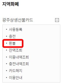 ◆ 광주은행홈페이지 → 카드 → 지역화폐 → 광주상생선불카드 → 환불