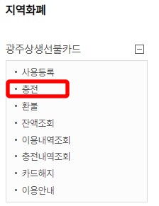 ◆ 광주은행홈페이지 → 카드 → 지역화폐 → 광주상생선불카드 → 충전