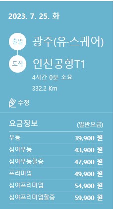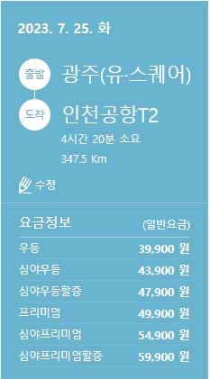 7월 11일부터 고속버스요금이 인상되었는데요.
