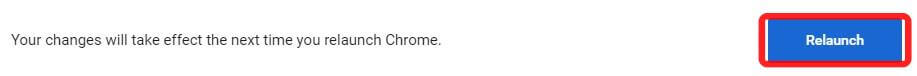 4. 변경이 완료되면 하단에 나타나는 'Relaunch' 버튼을 클릭해 주세요. 이렇게 하면 크롬창이 닫히고 재실행됩니다.