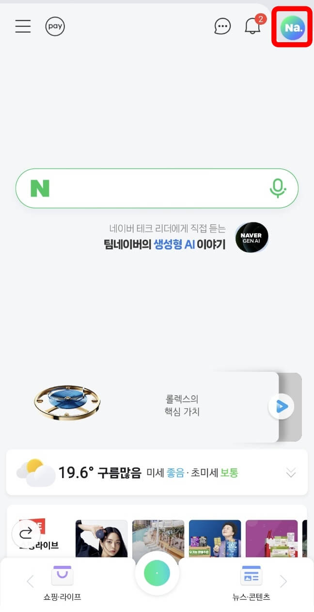 1. 네이버앱 - 오른쪽 상단 Na. 선택