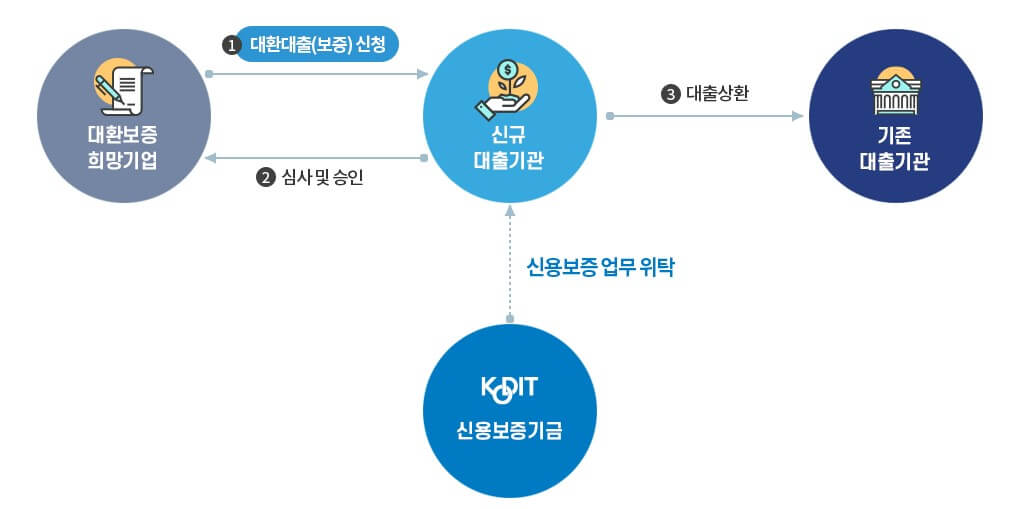 준비한 서류를 신청 은행에 접수하고, 보증심사와 대출심사를 거쳐 대환 프로그램 지원이 가능한지 판단합니다.