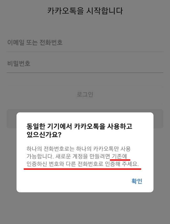 ※ 동일한 기기에서 두 개의 카톡을 사용하려면 기존 인증받은 전화번호가 아닌 다른 전화번호가 필요합니다.
