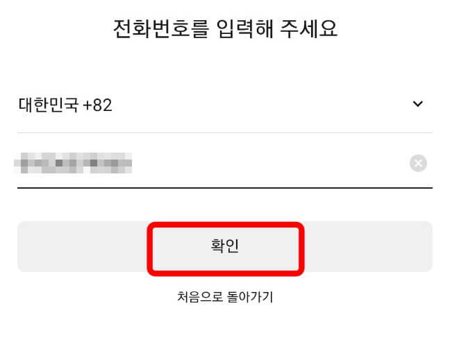 3. 통신사의 넘버플러스, 투넘버 또는 듀얼넘버를 사용하고 있다면 여기에서 전화번호를 입력하여 인증번호를 받으면 됩니다.