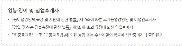 농작물을 재배하거나 가축을 기르거나 수산물을 잡는 등의 영농 활동을 하는 분이라면 누구나 대상이 됩니다.