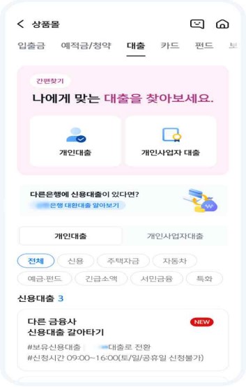 - 금융회사 앱: 해당 금융회사의 대출로 바로 갈아탈 수 있게 지원
