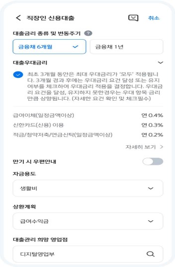 6. 갈아탈 대출에서 받을 수 있는 우대금리 확인