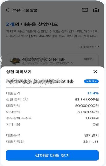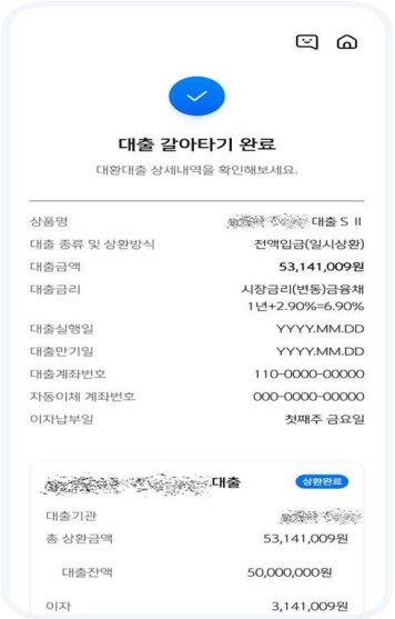 7. 모든 정보를 확인하고 대출 갈아타기 완료