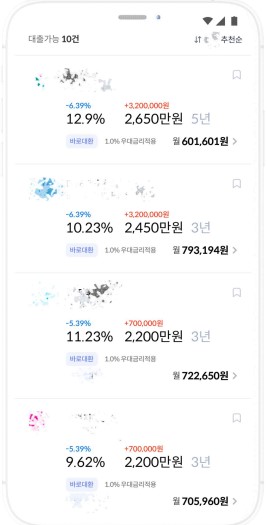 - 대출비교 플랫폼 앱: 여러 금융회사의 대출조건비교