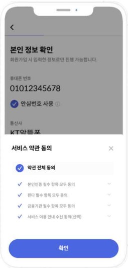 2. 개인정보 입력, 서비스 약관 동의하고 본인인증