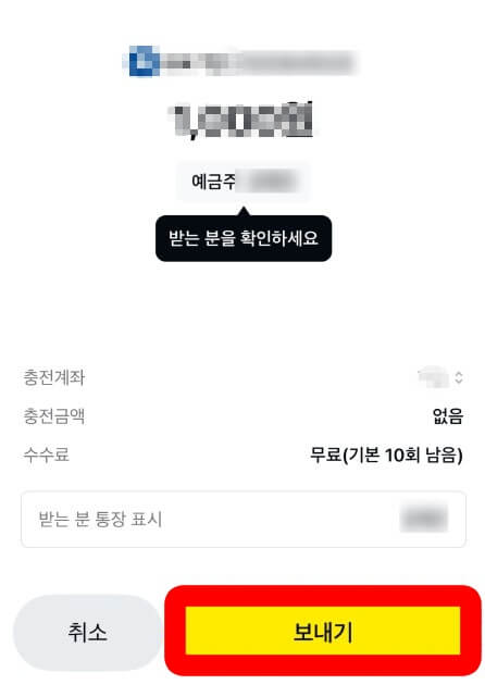 카카오페이로 송금 수수료는 무제한 무료입니다.