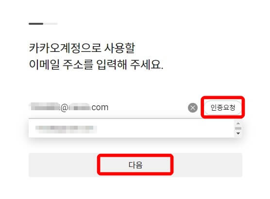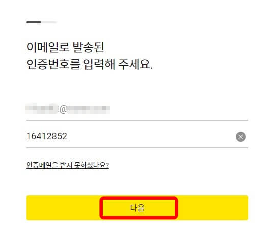 5. 이메일로 받은 인증번호를 아래칸에 입력하고 [다음] 클릭
