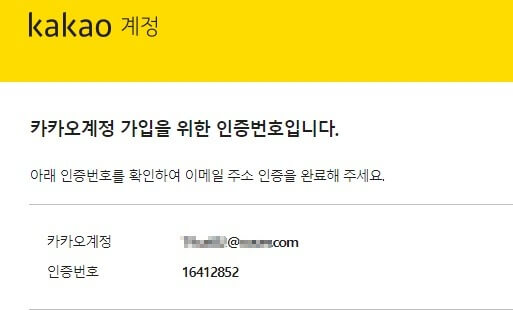 4. 입력한 이메일에 들어가서 카카오에서 보낸 메일을 확인하면 인증번호를 확인할 수 있습니다.