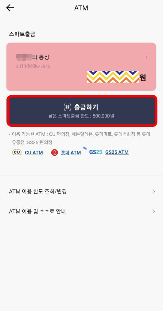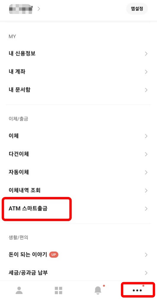 ◆ 카카오뱅크 앱 - 하단 더 보기(···) - ATM 스마트출금 - 사용하기