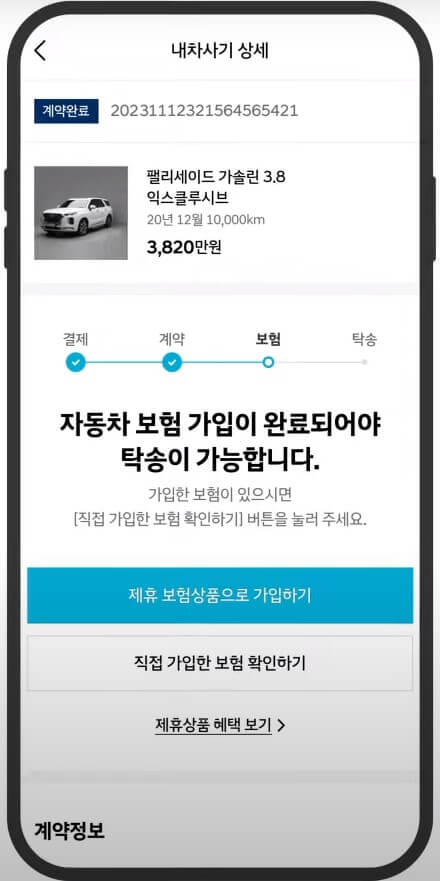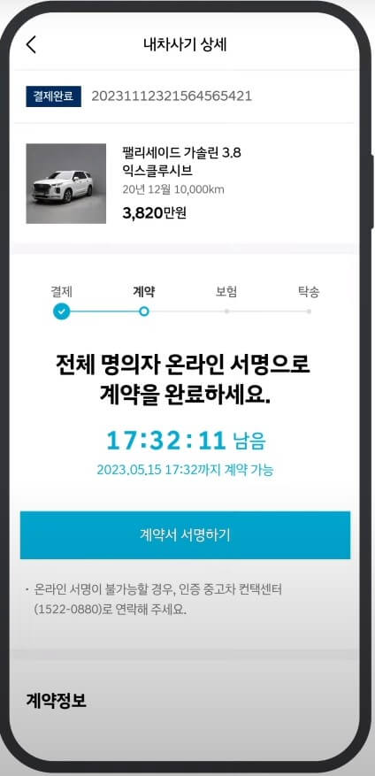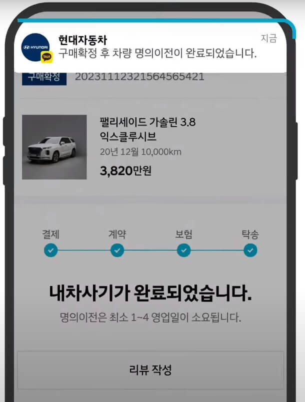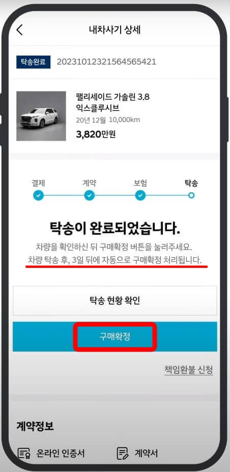 차량을 받은 후 3일 뒤에는 자동으로 구매확정이 된다고 하네요.