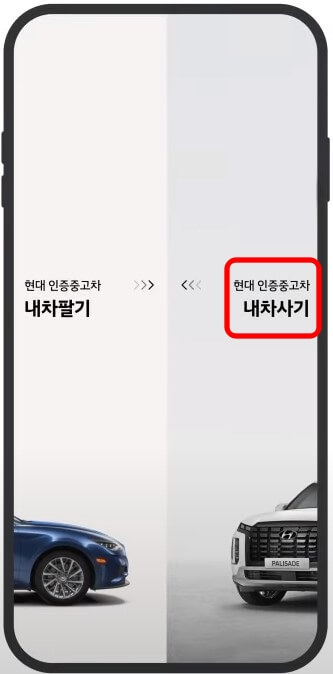 [현대 인증중고차 내차사기] 클릭하여 해당 브랜드관으로 들어갑니다.