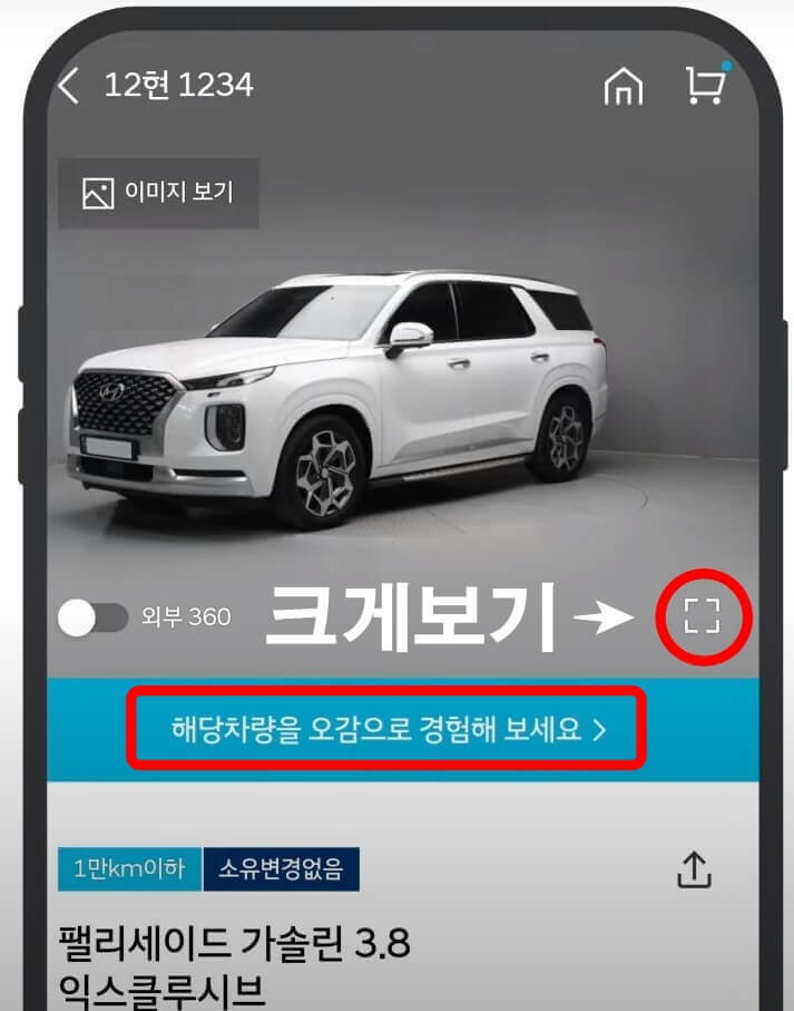 우측 하단의 버튼을 누르면 더 크게 차량을 확인할 수 있습니다.