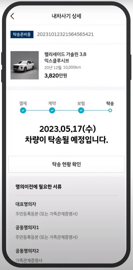 서류 전달이 완료되면 인증중고차센터에서 구매한 차량을 탁송하게 됩니다.