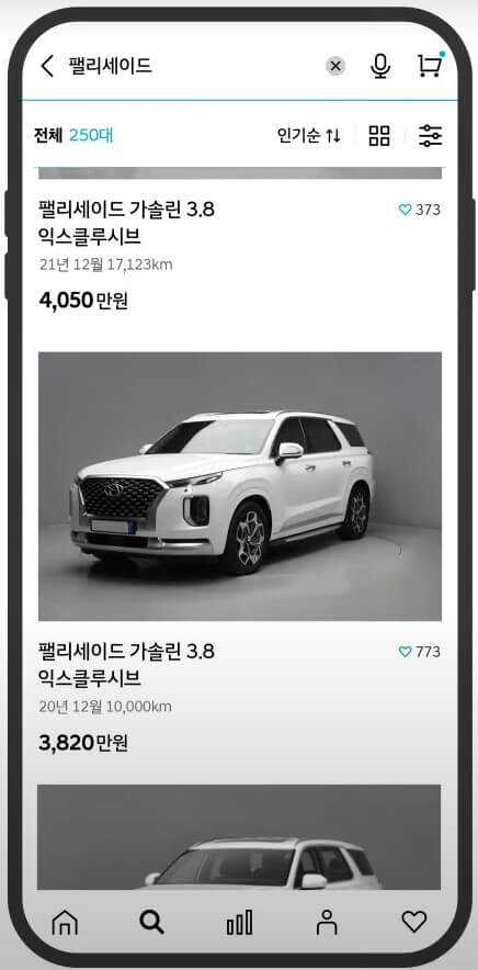 검색창에서 원하는 차량을 직접 입력하여 검색할 수 있습니다.