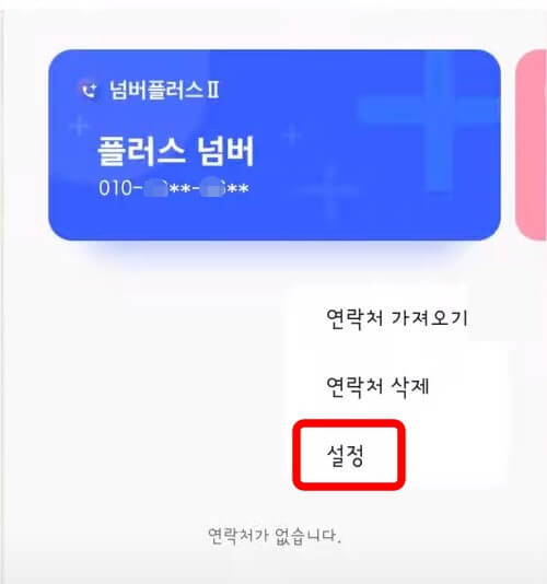 4. 플러스 넘버창에서 [더보기] - [설정]에 들어갑니다.